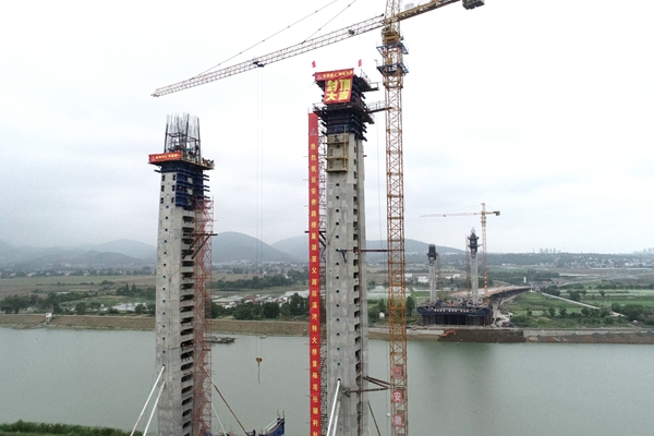 在塔柱建設過程中,參建人員努力克服了塔柱截面尺寸變化大、整體拼裝模板施工難度大、安全管理風險高等困難,取得施工階段性勝利,向大橋主跨合龍又邁出了堅實的一步。