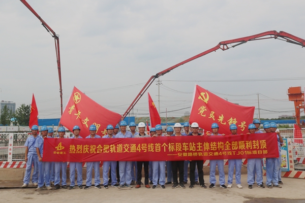 合肥軌道交通4號(hào)線首個(gè)標(biāo)段內(nèi)車站主體結(jié)構(gòu)全部順利封頂