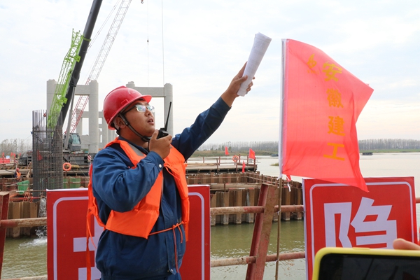 固蚌、蕪黃高速作為省委省政府規(guī)劃的“縣縣通高速”,將在2021年建成通車,這對(duì)于今年3月份項(xiàng)目才正式開工的全體建設(shè)者來說,無疑是個(gè)巨大挑戰(zhàn)。在淮河岸邊、澮河之上,青年黨員陸志康正在組織打樁機(jī)施工?!皾液犹卮髽蜷L2.6km,是安徽省首座組合梁系桿拱橋,引橋采用鋼板組合梁,建成后將成為澮河上的新地標(biāo),”他自信地說。不論是疫情防控后的復(fù)工復(fù)產(chǎn),還是抗洪期間,他都始終沖鋒在前,白天在一線蹲守,晚上研究解決問題的辦法。圓月初升,各個(gè)工位上的聚光燈,點(diǎn)燃寂靜夜空,將夜晚照得如同白晝明亮,陸志康乘著夜色仍在混凝土澆筑工點(diǎn),忘記了時(shí)間,只為了一個(gè)目標(biāo),就是要把項(xiàng)目又好又快建成。