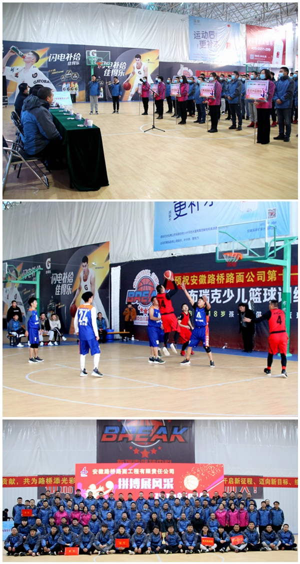 為豐富職工文化生活,增進(jìn)職工溝通交流,促進(jìn)企業(yè)文化建設(shè),提高團(tuán)隊(duì)凝聚力,12月30日至31日,安徽路橋路面公司第十一屆職工籃球賽在合肥布瑞克籃球館成功舉辦。公司黨委委員、紀(jì)委書(shū)記林緒坤,工會(huì)主席楊建強(qiáng)出席開(kāi)幕式。
