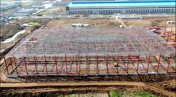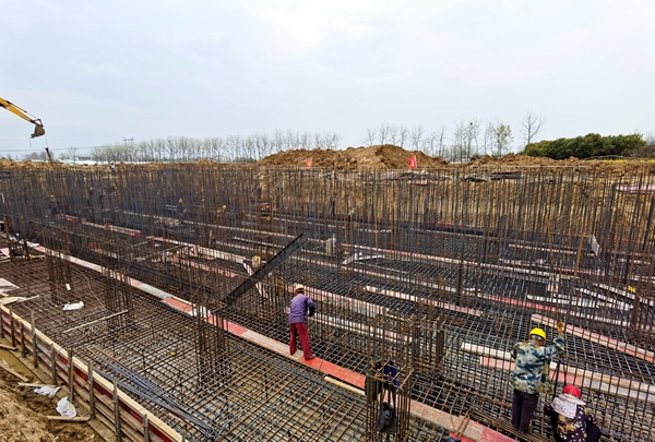 2021年1月4日,在基地藍(lán)圖繪就的基礎(chǔ)上,廠房和辦公生活設(shè)施項(xiàng)目部進(jìn)場施工。他們克服了土地征收、連續(xù)多雨天氣、拆遷困難、樹木砍伐等不利因素,發(fā)揚(yáng)“特別能吃苦、特別能戰(zhàn)斗”的企業(yè)作風(fēng),解決了一個又一個棘手的問題,加班加點(diǎn)推進(jìn)基地基礎(chǔ)設(shè)施建設(shè)。截至3月底,吳山產(chǎn)業(yè)化基地項(xiàng)目3#管片生產(chǎn)車間地基基礎(chǔ)、短柱、框梁施工完成100%;3#管片生產(chǎn)車間鋼柱、鋼梁等主體結(jié)構(gòu)安裝完成70%,拌合站主機(jī)、粉煤灰罐基礎(chǔ)完成100%。