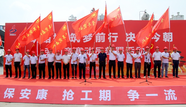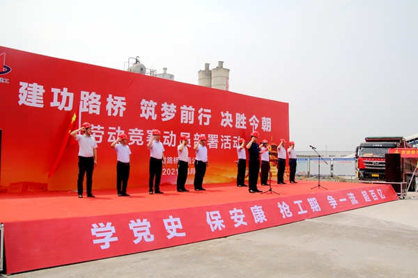 路面公司總經(jīng)理薛斌作動員講話,副總經(jīng)理陳智宣讀了勞動競賽活動方案,項目經(jīng)理代表、黨員代表、青年代表和施工班組代表分別作了表態(tài)發(fā)言。現(xiàn)場還進行了“黨員先鋒隊”、“工人先鋒號”、“青年突擊隊”授旗。