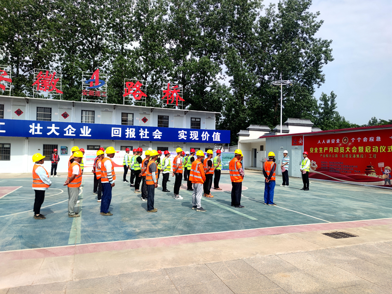 項(xiàng)目部堅(jiān)持一手抓安全、一手抓生產(chǎn),以“兩不耽誤、兩相促進(jìn)”為宗旨,加大宣傳力度,力爭(zhēng)實(shí)現(xiàn)“1+1>2”的效果。6月1日,項(xiàng)目部聯(lián)合霍邱縣交通局舉行了安全宣誓暨全國(guó)安全月活動(dòng)啟動(dòng)儀式,參觀安全月主題圖片展、學(xué)習(xí)安全生產(chǎn)相關(guān)知識(shí)特別是安全生產(chǎn)“八安八險(xiǎn)”等內(nèi)容,監(jiān)理單位、項(xiàng)目管理人員、勞務(wù)隊(duì)伍代表等30余人還進(jìn)行了安全生產(chǎn)集體宣誓。5月,項(xiàng)目部組織召開(kāi)勞動(dòng)競(jìng)賽啟動(dòng)儀式,結(jié)合項(xiàng)目進(jìn)度制定了競(jìng)賽活動(dòng)方案并及時(shí)宣貫、展開(kāi)討論。同時(shí),在項(xiàng)目部及施工現(xiàn)場(chǎng)醒目位置懸掛橫幅23條,在公告欄張貼各班組施工進(jìn)度完成情況并動(dòng)態(tài)更新,營(yíng)造勞動(dòng)競(jìng)賽濃厚氛圍。設(shè)置安全圍擋及安全警示標(biāo)牌,保證進(jìn)度的同時(shí)落實(shí)安全制度。