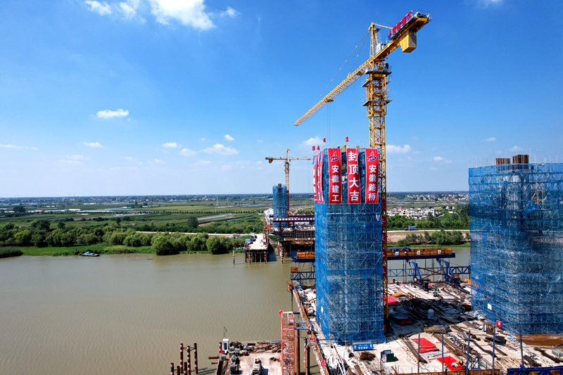 【名媒聚焦】蚌埠日報(bào):渦河八橋主橋首個(gè)塔柱順利封頂