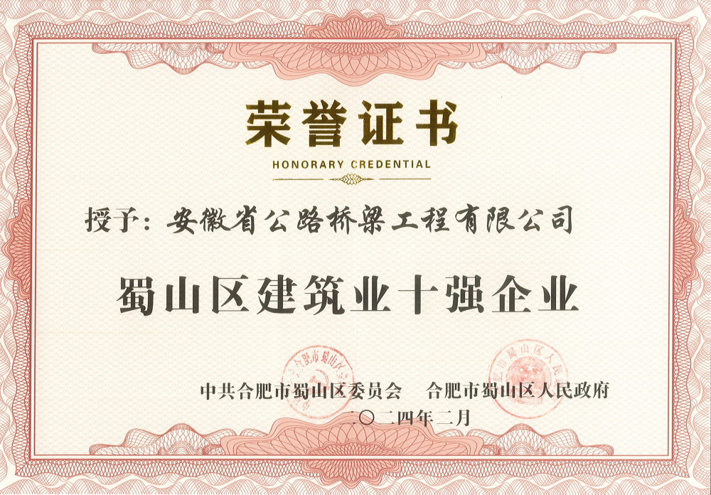 近日,蜀山區(qū)發(fā)布“建筑業(yè)10強企業(yè)”榜單,公司位列首位。