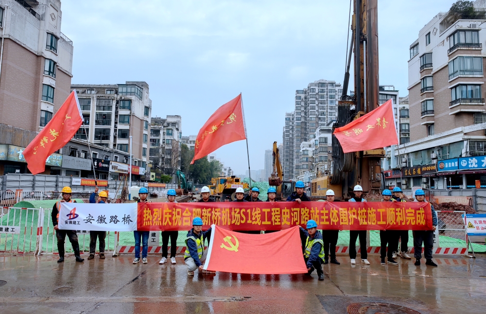 【路橋“競”行時】合肥新橋機場S1線先行段項目史河路站圍護樁施工順利完成