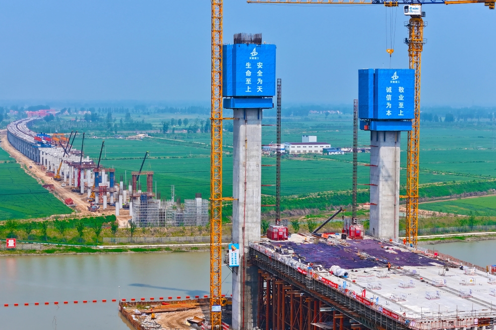 【路橋“競”行時】S16合周高速4標東淝河大橋項目主橋邊跨現(xiàn)澆箱梁澆筑完成