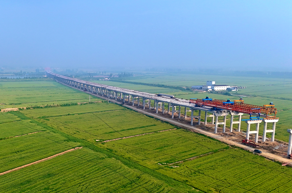 【名媒聚焦】淮南市人民政府發(fā)布、淮南日?qǐng)?bào)、淮河早報(bào):競(jìng)速初夏!S16合周高速東淝河特大橋主橋首段鋼箱梁順利架設(shè)
