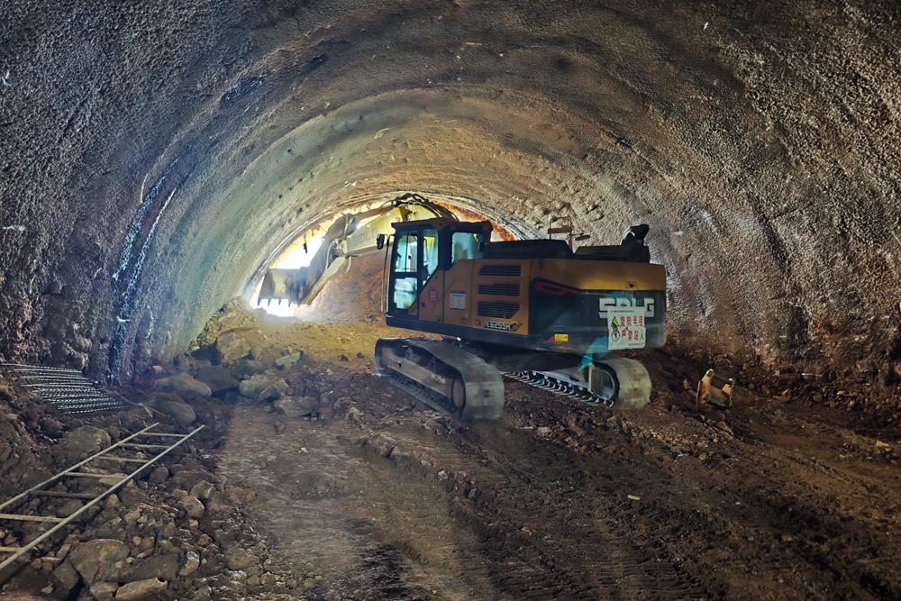 在江梓隧道左洞的內(nèi)部,也同時(shí)迎來了激動(dòng)人心的一刻。隨著挖掘機(jī)挖掘產(chǎn)生的巨大轟鳴聲在隧道內(nèi)回蕩,最后一塊巖石被精準(zhǔn)地挖掘開來,陽光透過新開的洞口灑進(jìn)隧道,照亮了這片黑暗的空間。工人們紛紛停下手中的工作,歡呼雀躍,慶祝這一時(shí)刻的到來。江梓隧道左洞的順利貫通,為項(xiàng)目后續(xù)耙齒嶺大橋梁板運(yùn)輸及安裝提供了有力保證,為整體工程的推進(jìn)奠定了堅(jiān)實(shí)基礎(chǔ)。江梓隧道右洞的施工也在緊張施工中,預(yù)計(jì)于8月份貫通。