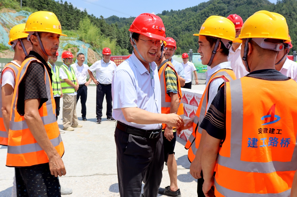 8月6日上午,建工股份黨委副書(shū)記、副董事長(zhǎng)、總經(jīng)理李有貴一行,赴涇青高速項(xiàng)目調(diào)研并開(kāi)展“送清涼”慰問(wèn)。