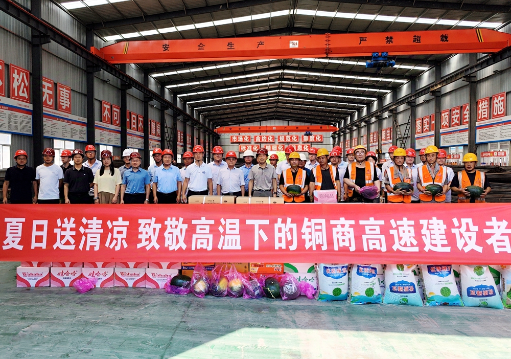 8月8日上午,省鐵投公司黨委副書記、總經(jīng)理何勝利帶隊到銅商高速主體1標開展“夏日送清涼”慰問,為高溫下堅守一線的建設(shè)者們送去防暑降溫物資,叮囑項目要做實做細防暑降溫工作,合理調(diào)整作業(yè)時間,切實保障廣大建設(shè)者的生命健康安全。