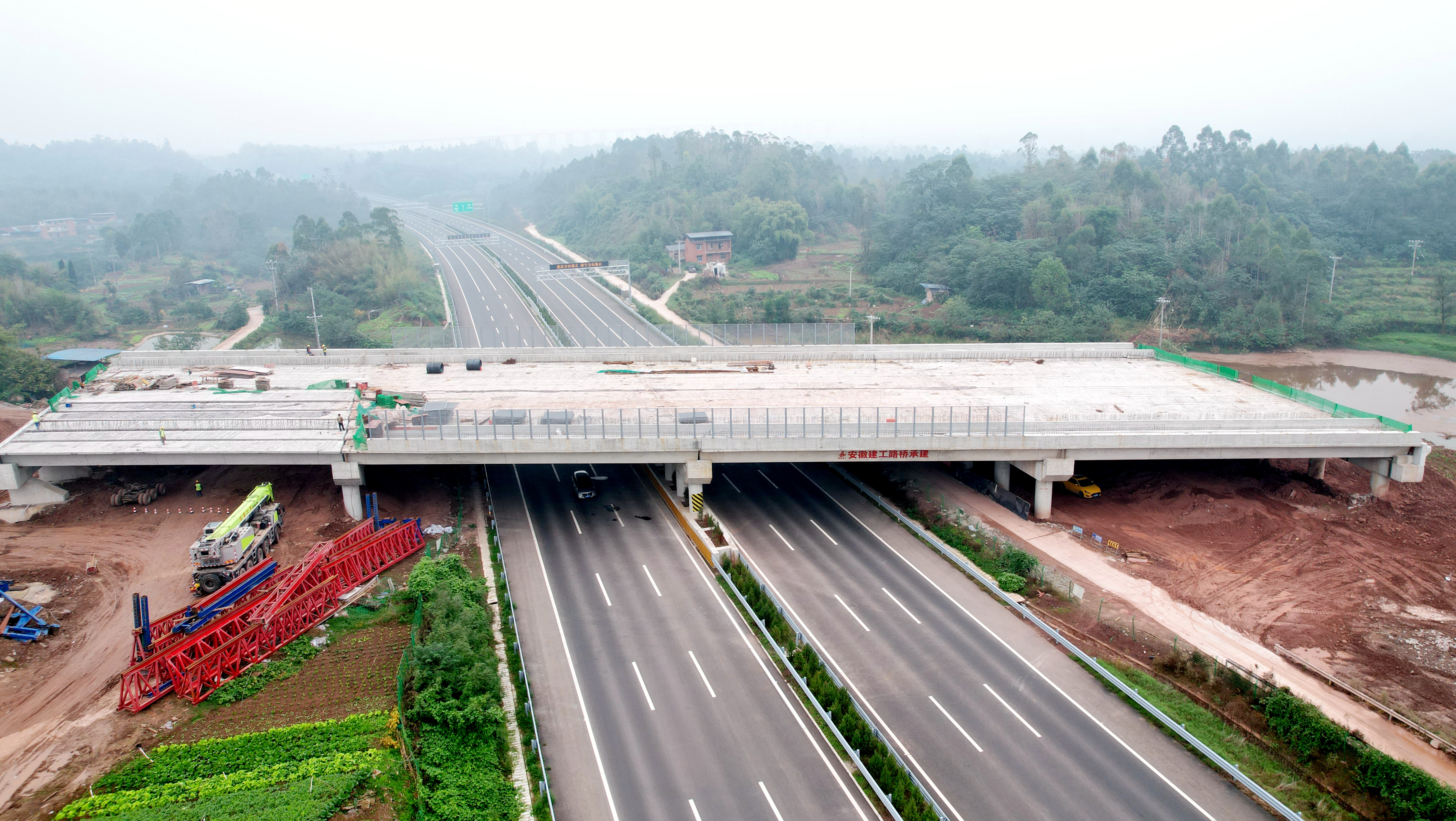 11月15日,隨著最后一片箱梁成功架設(shè),公司在渝首個EPC項目——重慶銅梁項目金浦大道銅安高速上跨橋主體工程圓滿完成,項目進(jìn)入橋面系施工階段。
