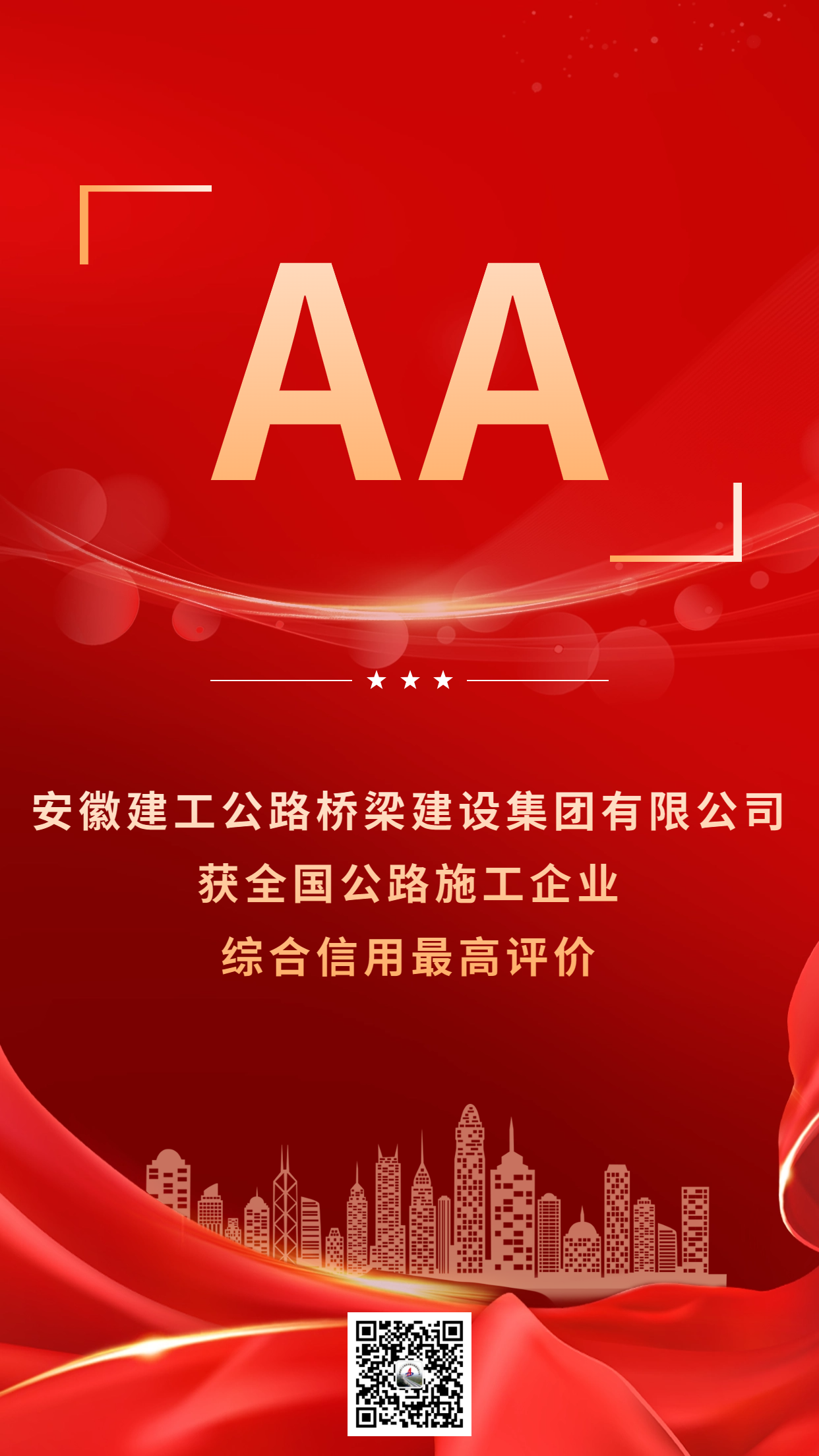 “AA”級(jí)!公司再獲全國公路施工企業(yè)綜合信用最高評(píng)價(jià)