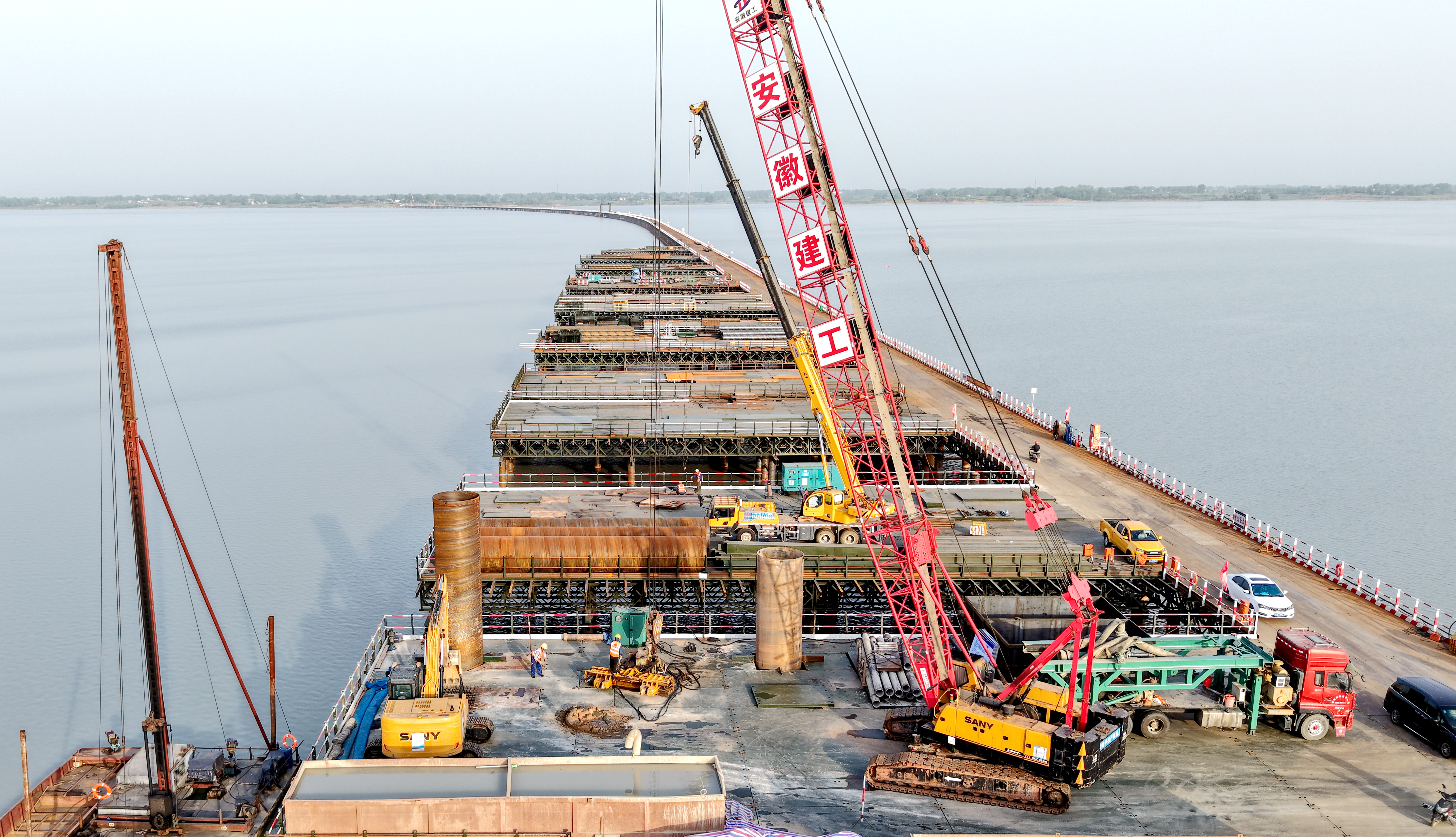 春暉大干正當(dāng)時(shí) | S20長(zhǎng)固高速路基01標(biāo)城東湖特大橋首根水上樁基澆筑完成