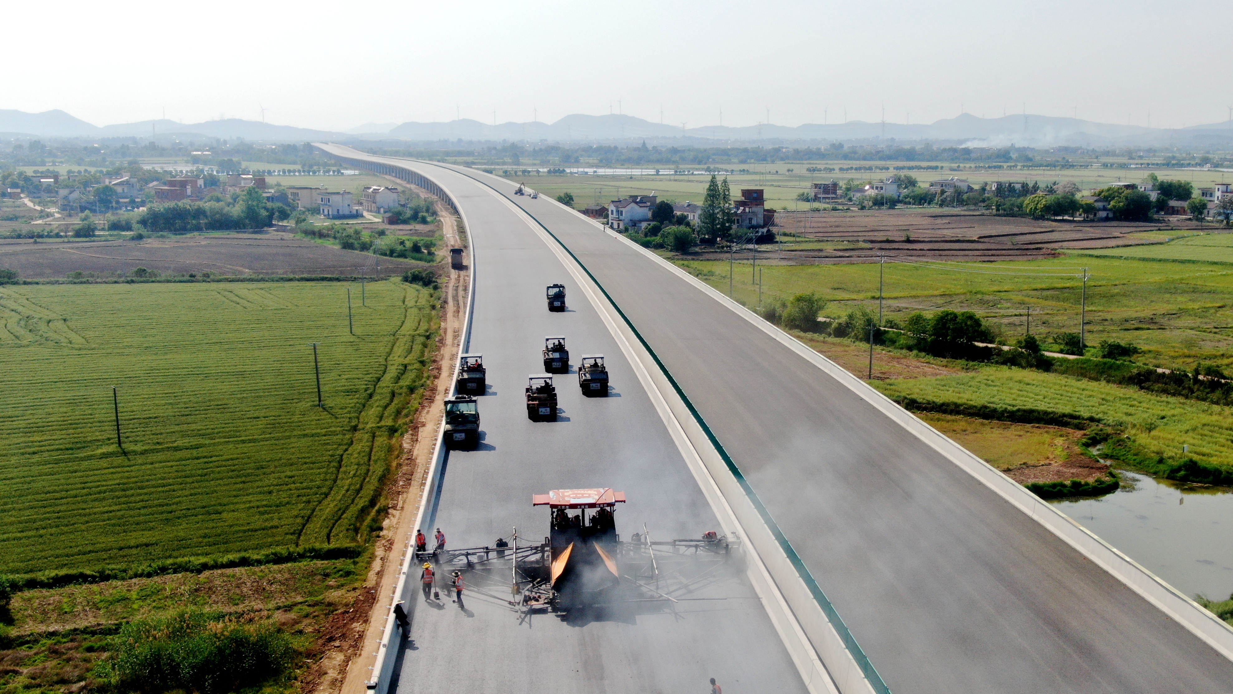 春暉大干正當(dāng)時 | 銅商高速主體1標(biāo)永安河特大橋?yàn)r青攤鋪完成