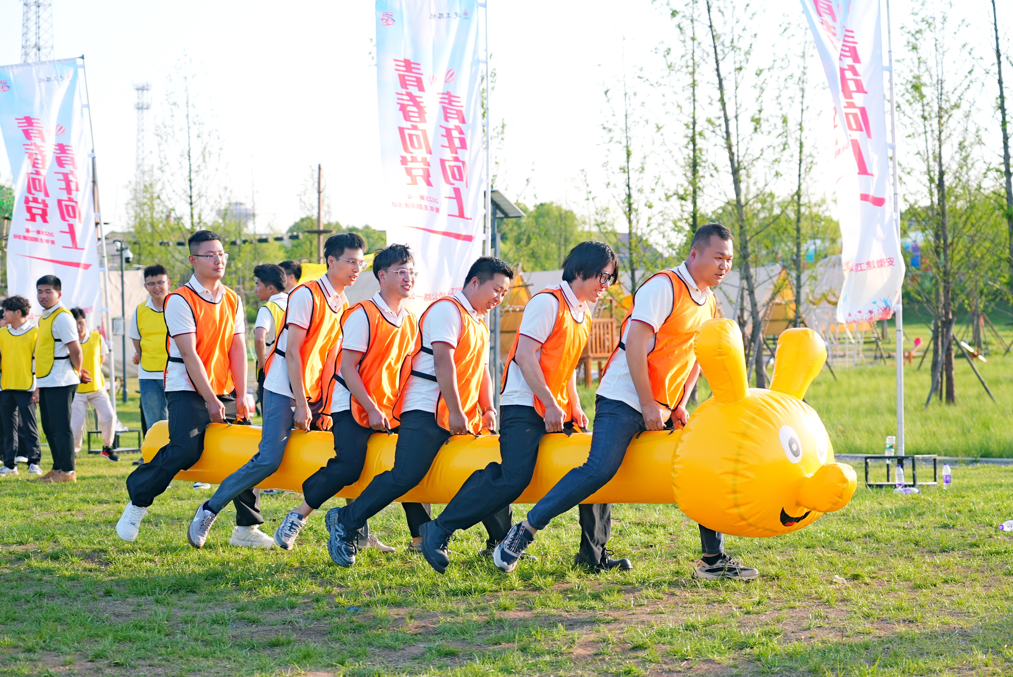為期一天半的主題活動(dòng)中,青年們分為六隊(duì),先后參與了“群龍取水”“沙場(chǎng)點(diǎn)兵”“趣味毛毛蟲(chóng)”“飛盤(pán)嘉年華”“超級(jí)有氧鼓”等互動(dòng)項(xiàng)目。在鼓點(diǎn)與歡笑交織中,青年們釋放激情、增進(jìn)默契,充分展現(xiàn)了敢闖敢拼、銳意進(jìn)取的精神風(fēng)貌。