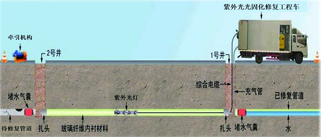 紫外光固化管道修復技術(shù)為城市雨污水管網(wǎng)改造帶來全新方案探索。將特制軟管材料浸漬光固化樹脂后拉入舊管道,在紫外光照射下迅速固化形成高強度內(nèi)襯管,無需開挖路面,極大減少施工擾民與環(huán)境破壞。在新站區(qū)排水管網(wǎng)排查整治完善工程一期-1標順利實現(xiàn)了安徽省內(nèi)最大管徑管道紫外光固化修復。