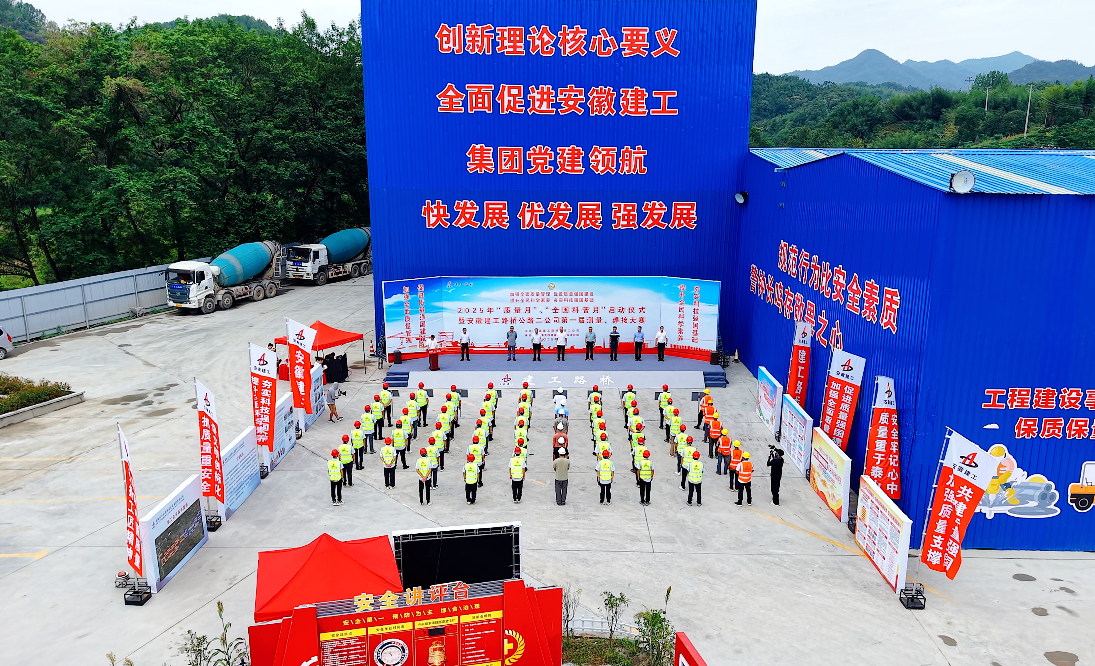 9月14日,公路二公司“質(zhì)量月”“全國科普月”啟動儀式暨首屆測量與焊接競賽在天堂寨支線高速項目順利舉辦,公司黨委委員、副總經(jīng)理程濤出席活動并講話,來自所屬各項目共18名選手組成的6支隊伍參加。