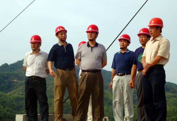 程廳長一行一到項(xiàng)目部就馬不停蹄地來到施工現(xiàn)場,一邊詢問施工進(jìn)展情況,一邊現(xiàn)場查看和指導(dǎo)。程廳長在肯定項(xiàng)目前期安全工作成績的同時,對金桃大橋后期施工安全防范和安全措施提出了具體要求和指導(dǎo)意見。一是后期施工一定要把安全工作放在首位,工期必須服從安全、質(zhì)量要求;二是要對纜索吊系統(tǒng)進(jìn)行一次全面的安全隱患排查;三是要注意結(jié)構(gòu)件堆放分布合理;四是要合理安排一線工人作息時間,避開高溫時間施工,以防中暑等;程廳長還對安徽路橋在金桃大橋建設(shè)中做出的努力給予了高度評價(jià)。