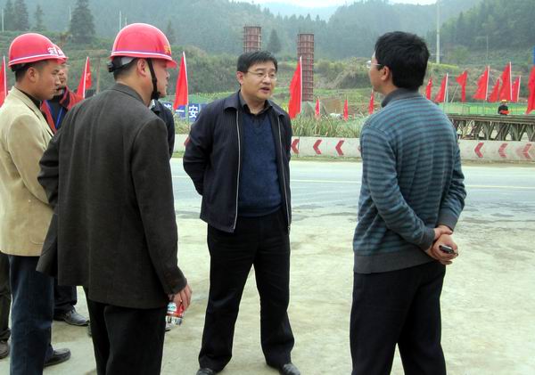 在聽取了黃經(jīng)理對施工進度、難點及施工計劃的匯報后,汪總對我部自開工以來,上下一心,克服重重困難掀起全面大干熱潮給予了充分的肯定;同時對我標段下階段的施工提出了幾點要求:第一,做到統(tǒng)籌安排、科學調(diào)度、精細管理、加快施工進度;第二,強化安全意識,加強安全教育培訓及安全防護措施,將安全文明施工落到實處;第三,在加快進度的同時重視工程質(zhì)量的控制,尤其做好路基填筑紅砂巖的質(zhì)量控制及施工工藝的控制。