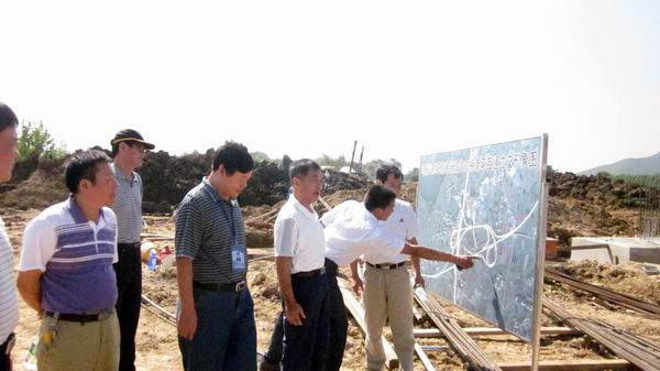 晴空萬里,微風徐徐,正值工程大干好時機,工地一片繁忙的景象。土方車輛陸陸續(xù)續(xù),施工機械競相舞動。李董一行驅車沿施工便道一路觀望,從東環(huán)路,經(jīng)A匝道與南環(huán)線,隨后在南環(huán)主線與A匝道交匯點——AK0+129現(xiàn)澆橋施工處駐足觀看。項目經(jīng)理冷峰結合施工形象圖,詳細介紹了目前我部工程進展情況、剩余工程的計劃安排以及工程質量、安全等方面的控制與保障措施。李董悉心聽取,了解情況,對工程目前的進展表示滿意;同時指出,南環(huán)互通立交改建工程處在整個東環(huán)改造的樞紐位置,控制著整體工期,要求我部精心組織,合理安排,借大干一百天時機,保質保量完成施工任務。最后李董一行先后視察了匝道施工現(xiàn)場、梁板架設施工現(xiàn)場等。