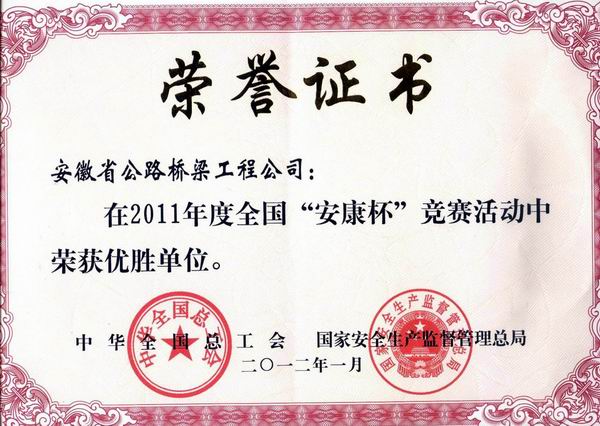 公司喜獲全國“安康杯”競賽優(yōu)勝單位稱號