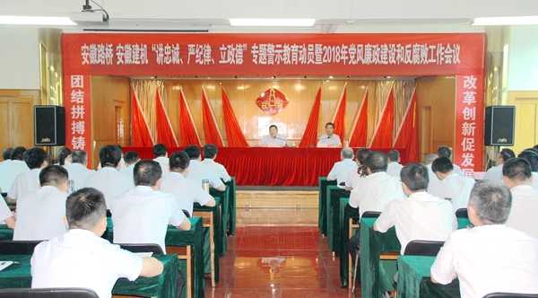 6月13日,公司在七樓會議室召開“講忠誠、嚴紀律、立政德”專題警示教育動員暨2018年度黨風廉政建設(shè)和反腐敗工作會議。公司領(lǐng)導班子成員、中層干部和安徽建機中層以上干部參加會議,公司黨委書記、董事長、總經(jīng)理孫學軍出席會議并作動員講話,會議由公司黨委委員、紀委書記林緒坤主持,
