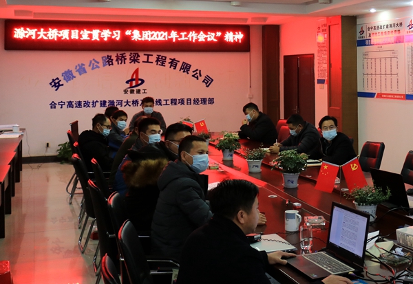 2月3日上午,集團(tuán)2021年工作會(huì)議在合肥勝利召開。會(huì)議結(jié)束后,安徽路橋公司所屬各級(jí)黨組織積極行動(dòng),把學(xué)習(xí)傳達(dá)集團(tuán)2021年工作會(huì)議精神作為當(dāng)前重要工作抓緊抓實(shí)。