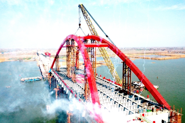 繁華大道跨引江濟淮橋梁及接線工程是安徽省首座公軌合建雙層特大拱橋。今年春節(jié)假期,有一百多名參建人員堅守崗位,搶抓施工進度,進行主橋主墩樁基、軌道交通橋梁下部結(jié)構(gòu)承臺和方興大道以東南側(cè)200米井段雨污水工程的作業(yè)。