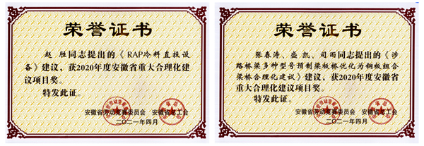 近年來,公司高度重視引導職工積極參與合理化建議,建立并不斷完善相應激勵措施,2017年以來,公司累計獲得47項安徽省重大合理化建議項目獎,在降低生產成本、提高生產效率和推動公司高質量發(fā)展方面作出了顯著貢獻。