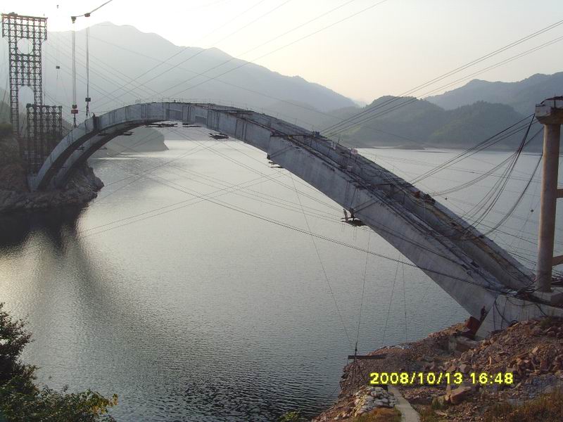 金桃大橋自2008年8月8日復(fù)工以來(lái)得到省交通廳領(lǐng)導(dǎo)高度重視,在公司領(lǐng)導(dǎo)的精心策劃,統(tǒng)籌安排下,項(xiàng)目部克服種種困難重新組織施工隊(duì)伍并投入到大規(guī)模地生產(chǎn)施工中,掀起一場(chǎng)大干熱潮,目前工程進(jìn)展一切順利。2008年10月16日金桃大橋梅山跨箱拱已全部拼裝完成并順利合攏,拱上工程立柱、系梁、蓋梁安裝施工也在有序進(jìn)行。桃?guī)X跨36片箱拱已預(yù)制完成22片。項(xiàng)目部全體員工都鼓足干勁力爭(zhēng)在4月中旬完成所有預(yù)制構(gòu)件,六月中旬爭(zhēng)取完成桃?guī)X跨箱拱的拼裝使其順利合攏。