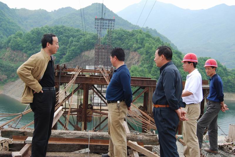 2009年4月30日上午10:30,寧?kù)o的大別山革命老區(qū)金寨縣梅山水庫(kù)上空傳來(lái)了清脆的鞭炮聲,絢爛的禮花把青山綠水映襯得更加多姿。備受社會(huì)關(guān)注的金寨縣金桃大橋主橋第二孔,即桃?guī)X跨第一片重達(dá)75T的箱拱梁被緩緩吊起,在眾目凝視下穩(wěn)穩(wěn)就位,為“五.一”國(guó)際勞動(dòng)節(jié)獻(xiàn)上了一份厚禮。這預(yù)示著金桃大橋又取得了一個(gè)實(shí)質(zhì)性的進(jìn)展和階段性的勝利。金寨縣交通局張傳旭局長(zhǎng)、王學(xué)軍副局長(zhǎng)、總監(jiān)賈淳忠等在公司總經(jīng)濟(jì)師楊文柱的陪同下,現(xiàn)場(chǎng)觀(guān)看了整個(gè)吊裝過(guò)程。下午,金寨縣人大副主任石本德、縣委常委、常務(wù)副縣長(zhǎng)趙權(quán)分別到場(chǎng)表示祝賀和慰問(wèn)。