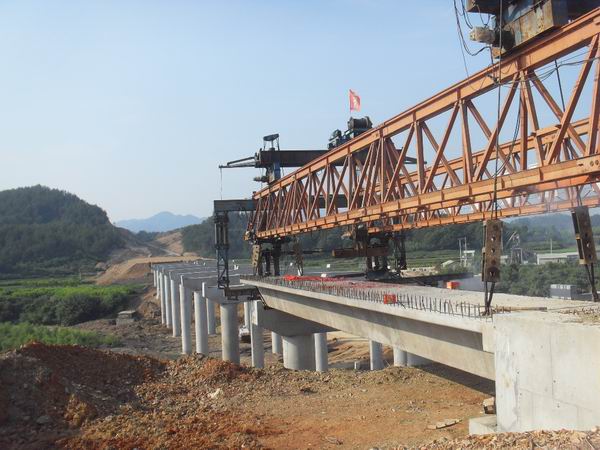 績黃高速02標(biāo)成功安裝第一片箱梁