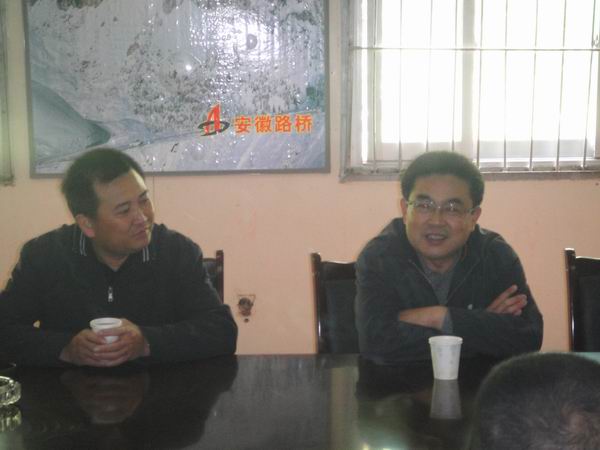 在項目部會議室,陳經(jīng)理首先向交通廳領(lǐng)導(dǎo)匯報援建工程施工進展情況以及漳黃路02標全體建設(shè)者克服各種不利因素,提升大干干勁等情況。交通廳及公路局領(lǐng)導(dǎo)對安徽路橋在四川援建工程中的表現(xiàn)表示滿意,并鼓勵項目部全體人員要再接再厲,樹起安徽筑路人的光輝風采。