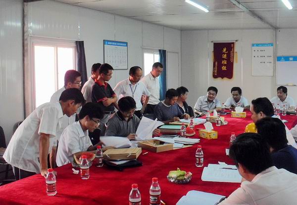 隨后,檢查組來到項(xiàng)目部對安全、質(zhì)量、試驗(yàn)等內(nèi)業(yè)資料進(jìn)行了檢查。檢查組認(rèn)真查看了路基填筑、沖壓以及橋梁工序自檢資料,對資料不規(guī)范處進(jìn)行了指導(dǎo),要求我部在施工中及時、準(zhǔn)確、規(guī)范完成內(nèi)業(yè)資料的整理工作。同時,檢查組對工地臨時試驗(yàn)室進(jìn)行了全面檢查,對儀器設(shè)備、標(biāo)管理養(yǎng)護(hù)情況、試驗(yàn)室臺帳以及施工砼配合比做了檢查。