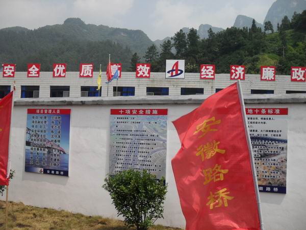 在管理機(jī)構(gòu)方面項目部設(shè)立了工程部、計劃統(tǒng)計部、質(zhì)檢部、安全環(huán)保部、協(xié)調(diào)部、財務(wù)部、材料部、設(shè)備部、綜合事務(wù)部等部門,并制定了各部門的管理制度及崗位職責(zé)。在管理體系方面項目部已建成了質(zhì)量保證體系、安全保障體系、環(huán)境保障體系等,同時做到了各類制度、圖標(biāo)、標(biāo)語上墻。工地試驗室的籌備建設(shè)通過了湖北省交通廳質(zhì)監(jiān)站的驗收,滿足了項目的各項試驗檢測要求。