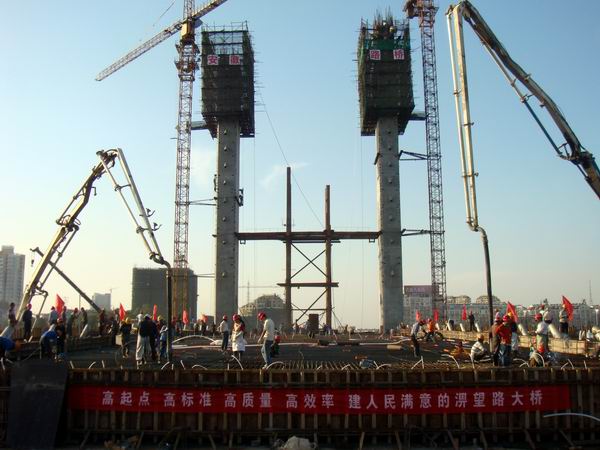 自17日下午15時30分至19日凌晨5時30分,經(jīng)過現(xiàn)場百余名一線工人和項目部全體技術(shù)人員一天兩夜無間斷連續(xù)作業(yè)38個小時的艱苦奮戰(zhàn),主橋85m邊跨混凝土一次性現(xiàn)澆圓滿完成,這是淠望路大橋上部結(jié)構(gòu)施工的又一階段性勝利。同時,它的澆筑完成也為下階段斜拉索施工及保證總工期奠定了堅實的基礎(chǔ),這是我們安徽路橋人發(fā)揚“特別能吃苦、特別能戰(zhàn)斗”精神的再一次生動體現(xiàn)。